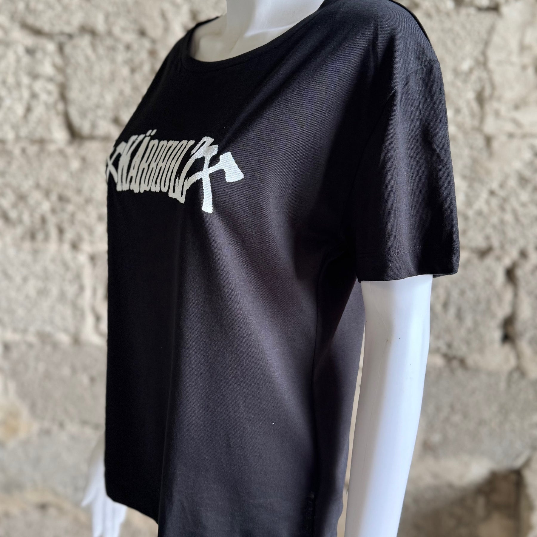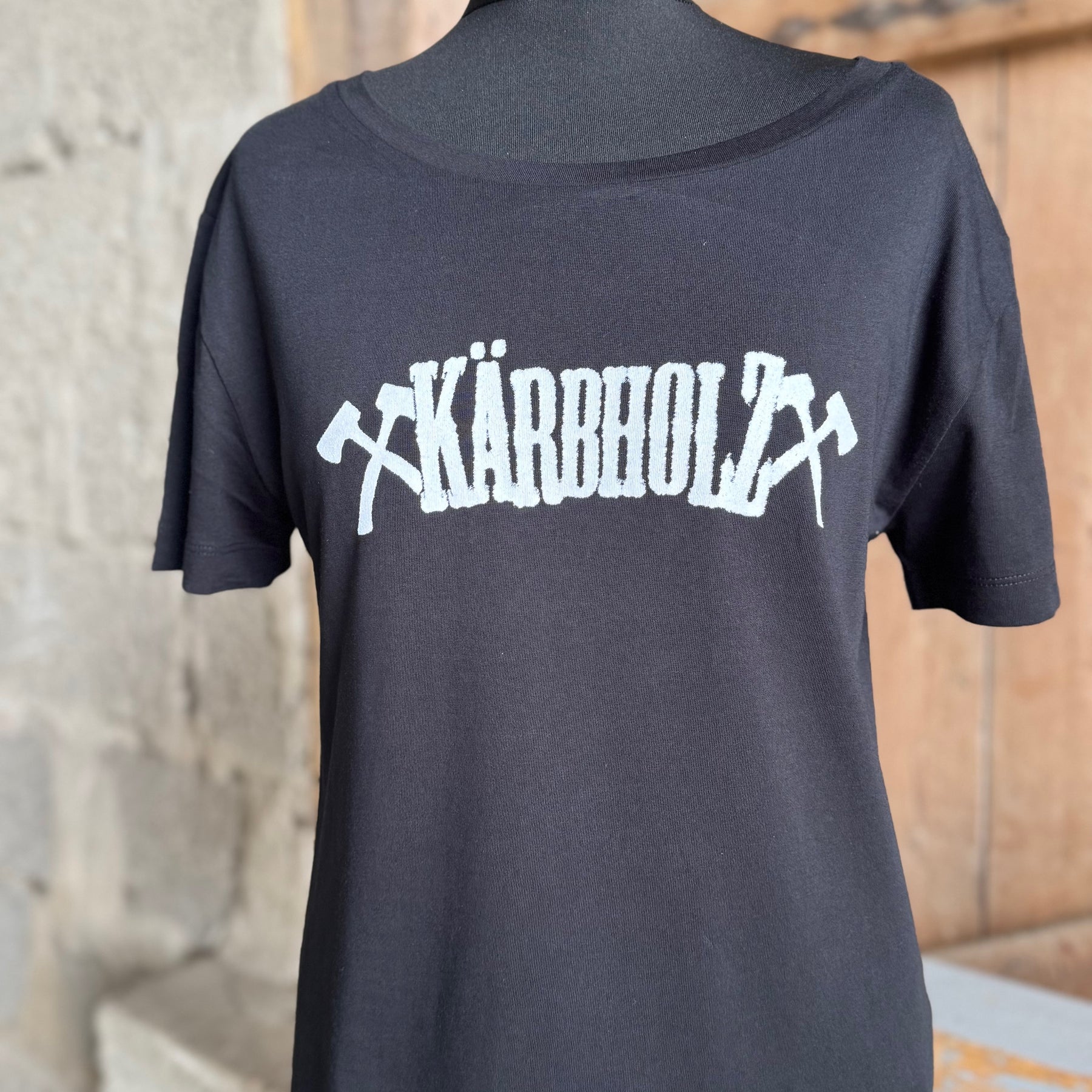 Auf der Vorderseite prangt der ikonische KÄRBHOLZ-Schriftzug mit gekreuzten Äxten – schlicht, stark und unverkennbar. Die Rückseite sorgt für das Statement: „STRAIGHT OUTTA HINTERWALD“ – groß, markant und mit absoluter Ansage.